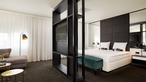 De 117 hotelkamers zijn ruim en hebben een moderne uitstraling. U kunt kiezen uit 3 type kamers en 2 suites, variërend in grootte van 30m2 tot wel 72m2. Alle kamers hebben een eigen klimaatbeheersing, tv, bureau, apart zitje, badkamer met douche en apart toilet. De suites beschikken ook over een losstaand bad.