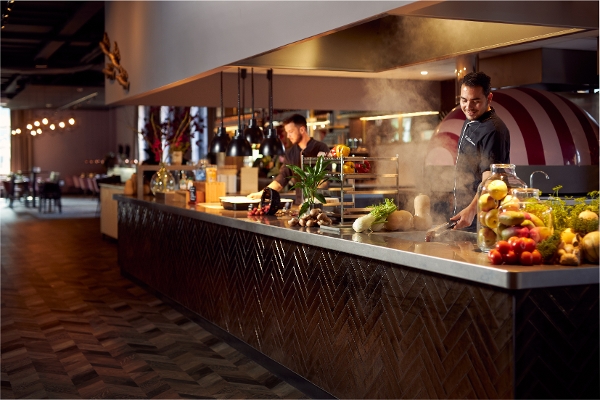 Marlijn en haar team hebben voor de nieuwbouw goed gekeken naar de wensen van de gasten. “Met het nieuwe business center hebben we alles wat de zakelijke gast nodig heeft, maar daarnaast vergeten we zeker niet de mensen die hier hun vakantie willen doorbrengen of speciaal hier komen om te eten. Dat is ook de reden dat er een Live Cooking restaurant is gerealiseerd in de nieuwbouw. Met een grote pizza-oven in het midden en heerlijke gerechten op het buffet, kunnen gasten daar hun eigen maaltijd samenstellen. Je kunt dus voortaan kiezen waar je wilt eten, want er is ook nog altijd ons à-la-carterestaurant. Vooralsnog zijn de Live Cooking diners in het weekend en is er op zondag de brunch. Bij het à-la-carterestaurant hebben we ook een leuke kinderspeelhoek gemaakt.”